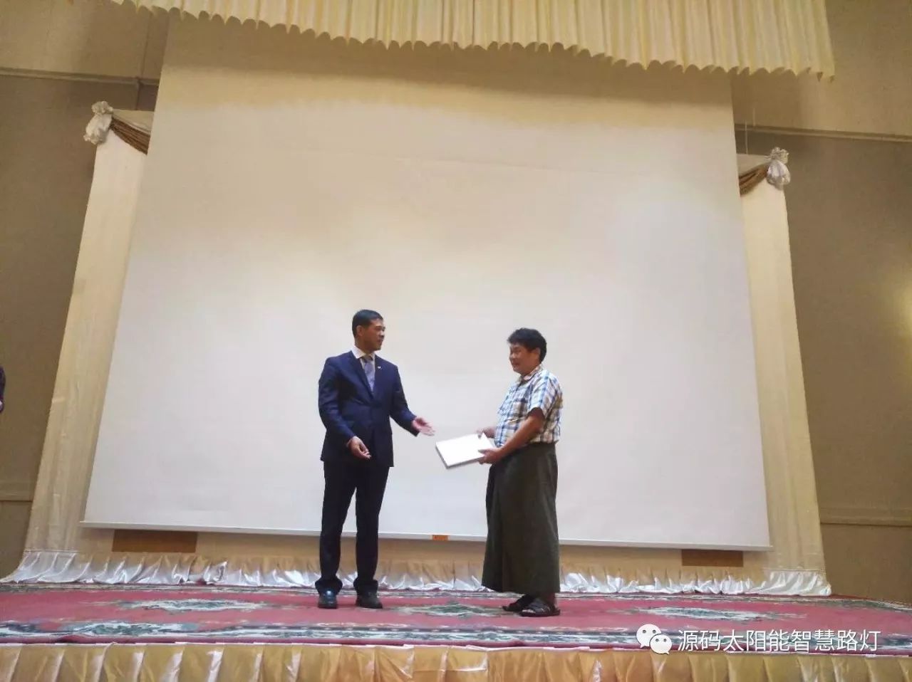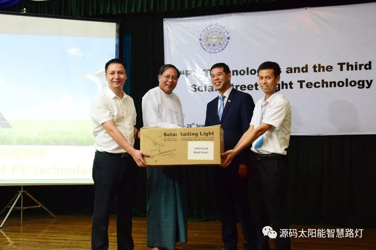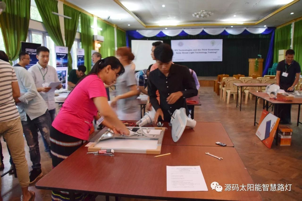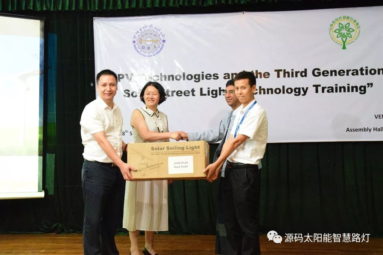 在培訓會議后,大家對此次的培訓綜合內(nèi)容及取得的效果進行了深入研討,參與此次培訓的能源部、政府部門的相關(guān)人員以及大學教授、企業(yè)代表都對此次培訓會的效果表示滿意,也希望以后能有更多的類似的培訓會,源碼也希望在以后的培訓中能夠給他們帶來更好的效果。研討會后,中國駐緬甸大使館領(lǐng)導對本次會議作了總結(jié):對本次培訓會議的培訓方云南省綠色能源行業(yè)協(xié)會以及源碼太陽能智慧路燈表示感謝,表示此次會議對雙方的技術(shù)交流學習以及中緬兩國友誼的加深都取到了十分良好的效果。接著緬甸教育部科技司司長則親自向所有通過考試的學員頒發(fā)了證書,在頒獎過程中,源碼也向緬甸教育部科技司捐贈了兩套太陽能智慧路燈。