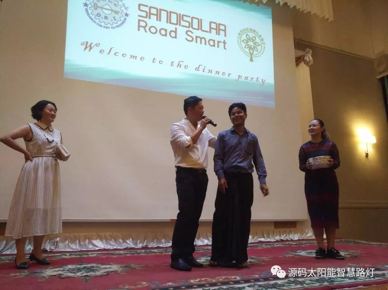 在答謝晚宴上,中國駐緬甸大使館領(lǐng)導向培訓會取得優(yōu)異成績的優(yōu)秀學員頒發(fā)了榮譽獎狀并給予了贊揚。同時也跟源碼進行了深度的交流,領(lǐng)導表示:源碼作為此次培訓會議的培訓講師,給緬甸的政府和行業(yè)人士傳遞了先進的新能源應用技術(shù),是一件引以為榮的事情。太陽能路燈在緬甸的推廣有利于提高緬甸人民的生活品質(zhì),是一個民生工程,從國家層面或者從中國政府層面,都會大力的支持像源碼這樣的勇于走出去且具有社會責任感的新能源企業(yè)。同時,領(lǐng)導也給了源碼很多在緬甸推廣的一些建議。