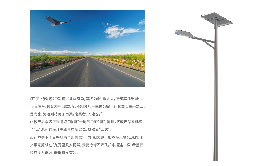 云鵬燈作為中大功率分體式太陽能路燈,被廣泛應(yīng)用于新農(nóng)村道路、鄉(xiāng)鎮(zhèn)道路、城郊車道等6-10米的安裝場景。